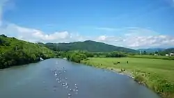 The Mitsuishi River originates at Mount Setaushi (859 kilometers (534 mi))[1] in the Hidaka Mountains and flows roughly south to southwest. The river flows into a reservoir at the Mitsuishi Dam. The Mitsuishi Dam was completed on the river in 1992 to prevent the flow of earth and sand from the Pirashike area (ピラシケ地区, Pirashike-chiku), which is prone to landslides.[1] It then continues until it reaches the Pacific Ocean at Mitsuishi in Shinhidaka, Hokkaido.[2]