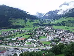 It has traffic links running east to west and north to south. The Felbertauern road tunnel runs south through the Hohe Tauern at an elevation of about 1630 m, providing a connection with Lienz in East Tyrol. To the north lies the Thurn Pass at an elevation of 1274 m, providing a connection with Kitzbühel and Tyrol.