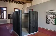 Commissioned by the 9-11 London Project Foundation as a permanent addition to Queen Elizabeth Olympic Park, in front of Zaha Hadid's Aquatic Center in London, England, Ando's sculpture stands eight meters tall and is made from steel recovered from the World Trade Center buildings.[27][28][29] Ando's memorial sculpture Since 9/11 (2011) honors the victims of the 2001 attack on the World Trade Center Twin Towers in New York City.