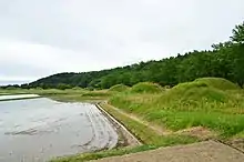 Each of the tumuli had lateral burial chambers ranging from 70 to 140 cm in width and around two meters in length, with the largest, No.11, having a length of 6.6 meters.[2]