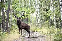The forest is mostly pine trees. The large wild area provides a habitat to many animals. There are many larger mammals in Mizhrichynskiy RLP such as red fox, moose, wolf, lynx, deer, roe deer, wild boar and others. There are 241 bird species, including 145 breeding species. White-tailed eagle, short-toed eagle, lesser spotted eagle, black kite, black stork, crane, black woodpecker, white-backed woodpecker and a lot of other rare birds breed here. It also provides important habitats for variety of fish[1] and insects.[2] There are 65 rare plant species and 74 rare animal species in Mizhrichynskiy regional landscape park. There are two Important Bird Areas within Mizhrichynskyi Regional Landscape Park.