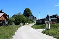 The village church was dedicated to Saints Phillip and James and dated from 1677.[7]: 135–136 It was a picturesque building with a bell-gable and a large portico. The main altar was created by Franz Götzl in 1841, and the side altar, dedicated to Saint Andrew, dated to 1862. Next to it there was a chapel dedicated to Saint Notburga.[10] The church fell into disrepair and was demolished after 1966. Its two bells were scrapped, and the stones from the church were reused to build nearby houses.[7]: 136 A chapel-shrine at the southern edge of the village was razed in 1963. A replacement, dedicated to Saint Peter, was built by Peter Požar and it was dedicated on 29 June 2007. A second chapel-shrine, dedicated to Saints Phillip and James, was built about 100 m from the location of the old church and was dedicated on 25 July 2007.[7]: 136