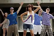 In the video Batelić is dancing with her friends and she's flirting with a guy.