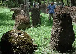 Mochong is a major prehistoric archaeological site on the island of Rota in the Northern Mariana Islands. It is considered the best preserved and second largest latte village in the Marianas. It is an extensive village site on the northern side of the island comprising 50 individual latte sets, scattered mortars (lusongs), scattered subsurface artifacts such as tools, fishing implements and abundance pieces of pottery; the Marianas Red Ware Pottery and the Marianas Plain Ware Pottery. This site also includes an extremely rare latte house structure consisting of 14 columns. It also has a latte stone wall, consisting of six columns and five slabs, that is more than 50 feet (15 m) long.[2] The site has been radiocarbon dated to c. 1000 BCE. The site was first sketched in the early 19th century by the French explorer Louis de Freycinet, and was in remarkably intact condition (compared to those sketches) in the 1980s.[3]