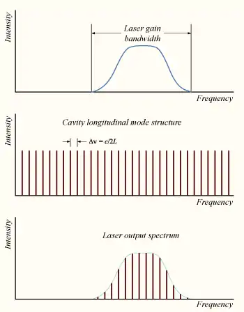 Each individual longitudinal mode has some bandwidth or narrow range of frequencies over which it operates, but typically this bandwidth, determined by the Q factor of the cavity (see Fabry–Pérot interferometer), is much smaller than the intermode frequency separation.