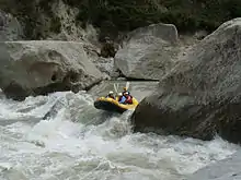 Up in the Kaweka range the Mohaka is a twisting grade II river with a bit of grade III. There are several Department of Conservation (DOC) campsites, hot pools and plenty of undisturbed native bush.[9] After approximately 36 km, it comes out of the Kawekas and farmland becomes more common[2] The river bends itself into an oxbow and shortly after rapids become larger as it leads into the grade III section. DOC campsites are still found along this 68 km stretch.[3]