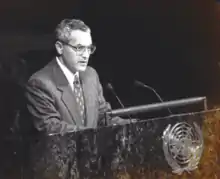 ![]() Galal addressing the United Nations General Assembly | |