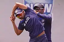 He was selected to tour the West Indies with the India A side and "impressed" with his bowling on pitches which were considered to be generally unhelpful to fast bowlers.[19] Shami was considered to have been the "surprise package" of the tour for India A, and impressed the team's coach Lalchand Rajput with his strength and consistency whilst bowling, as well as with his batting;[20] batting tenth in the first unofficial Test match, he scored 27 runs in a partnership of 73 with Cheteshwar Pujara which won the match for India A.[21] Later in the year he was one of only two fast bowlers retained for the India A tour of New Zealand,[22] although he only played in two of the six matches on the tour.[1]