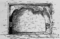 - Nicholas IV Carew (1444–1470), son and heir apparent, who married Margaret Dynham (d.1471), a daughter of Sir John Dynham (1406–1458) of Nutwell in the parish of Woodbury and of Hartland, both in Devon, and a sister and co-heiress of John Dynham, 1st Baron Dynham (c. 1433–1501),[52] Lord High Treasurer of England and Lord Chancellor of Ireland. Her mother was Joan Arches (died 1497), sister and heiress of John Arches and daughter of Sir Richard Arches (died 1417), a Member of Parliament for Buckinghamshire in 1402, of Eythrope, Cranwell (both in the parish of Waddesdon) and Little Kimble, Buckinghamshire.[53] The purbeck marble chest tomb of Nicholas IV Carew survives in the Chapel of St Nicholas in Westminster Abbey, the ledger stone of which bore a Latin inscription, now effaced. The Devonshire biographer Prince (d.1723) wrote concerning this monument "To whose memory an antient plain tomb of gray marble is there still seen erected with an inscription in brass round the ledg, and some coats of arms on the pedestal".[54] The inscription and arms were still remaining in 1733, but had disappeared by 1877.[55] The Latin epitaph was recorded by Prince as follows:[56]