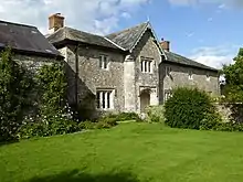 The old manor house burnt down in 1868 and was completely rebuilt as a farmhouse, categorised as a grade II listed building since 1955.[5] The ruins of a mid-16th century gatehouse lie to the south of the house; these and the adjoining garden walls, probably built in the mid-19th century at the same time as the farmhouse, are grade II* listed.[6][7] The house now has six reception rooms and six bedrooms. Around the courtyard are a cottage, stables and farm buildings. The River Otter forms part of the eastern boundary of the estate. In January 2014 the house with 228 acres was offered for sale for £3.5 million.[8]