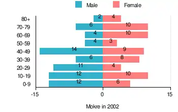 Figure 1. Population pyramid of village in 2002 — by age group and sex[1]