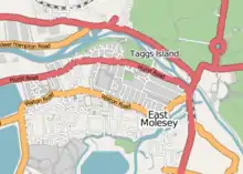 Molesey is divided into three wards: Molesey South, East and North. The majority of Molesey's detached properties are in the east, which also contains the highest proportion of apartments of the three wards. Molesey forms part of the Greater London Built-up Area.[2]