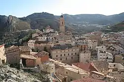 View of Molinos; the arid Sierra de Caballos, part of the Iberian System, rises behind the town