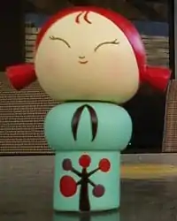Momiji Dolls were originally inspired in 2005 by traditional folk-art in northern Japan[3] called Kokeshi. These dolls were carved from spare pieces of wood and hand painted. They were usually made by farmers.[1] The dolls typically consist of a head and elongated torso representing the body and legs as a single piece.[1] Momiji dolls are different from the traditional Kokeshi dolls in that they are made from resin and contain a small space in the base. Inside the base is a small folded card for a secret message or greeting. Momiji dolls are often designed by fresh new designers and are known for their work with colleges and art schools worldwide.