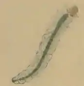 The larvae feed on small enchanter's nightshade (Circaea alpina) and enchanter's nightshade (Circaea lutetiana) mining the leaves of their host plant. The mine starts as a long, narrow, full depth, strongly spiral corridor. The frass is initially deposited in fine grains, but later in a central line. The larva leaves the mine to start elsewhere, either as a continuation of the existing corridor or in a new leaf. This new mine starts as a narrow corridor but soon widens into a large blotch. The frass is deposited in a broad band. Pupation takes place outside of the mine. Larvae can be found from mid-August to mid-September. They are whitish with a light brown head.[4]