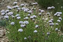Monardella odoratissima (mountain coyote mint, mountain beebalm, mountain monardella or mountain pennyroyal) is a perennial flowering plant which grows in mountain forests and sagebrush scrub. It is a member of the mint family (Lamiaceae). It has the minty odor characteristic of this family.