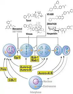 Monastrol is a cell-permeable small molecule inhibitor discovered by Thomas U. Mayer in the lab of Tim Mitchison. Monastrol was shown to inhibit the kinesin-5 (also known as KIF11, Kinesin Eg5), a motor protein important for spindle bipolarity.[1]
