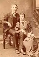 Dunn married Lois Woodward in 1891 and as the station agent went to live at Summit, South Dakota, a station established on the recently built extension of the Milwaukee Road. When the Sisseton and Wahpeton Reservation was opened for settlement Moncena and Lois took up a claim adjacent to the town of Summit, built a small wooden house and here their two children, Everett and Wendell, were born.[3] Moncena Dunn was appointed US Postmaster of Summit, 6 April 1892.