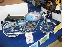 The collaboration between the Drusiani family and the Boselli family continued at the end of the war period, with the reconstruction of the building, thanks to the enormous economic resources of Boselli, who took over full control of the company.[2][3] FB effectively relaunched in 1948 as FB Mondial. Mondial found early racing success, winning their first of what would become five World Championships in only their second year of production. During a time when MV Agusta and Ducati produced economy lightweight two-stroke motorcycles, mopeds and scooters, Mondial was more of a "boutique" manufacturer, specializing in high-performance, small-displacement motorcycles. Much of the production of each motorcycle was done by hand, which kept output low, with production numbers typically ranging between 1,000 and 2,000 units per year. Mondial were able to continue this success for a number of years, sticking with this methodology. In 1957, Soichiro Honda approached Mondial owner Count Boselli for purchase of a Mondial racebike, with which the firm had just won the 125 cc and 250 cc world titles. Count Boselli gave Mr. Honda a racing Mondial; Honda used this bike as a standard to which he aspired, in order to compete on a world-scale. An original Mondial 125 cc racebike is, still now, the first bike on display when entering Honda's Motegi Collection Hall.