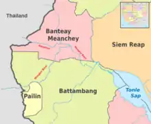 The Mongkol Borey River (Khmer: ស្ទឹងមង្គលបុរី) is a river in Mongkol Borey District in Banteay Meanchey Province in northwestern Cambodia. It flows from the border of Chanthaburi Province of Thailand and runs through Mongkol Borey and neighboring districts.[1] It is a major tributary of the Tonlé Sap.[2]