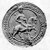 Baldwin II portrayed as a king on horseback on his seal.