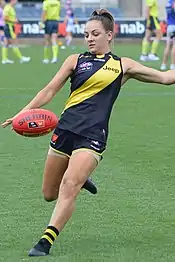 In April 2019, Conti was traded to Richmond for the first selection in the 2019 AFL Women's draft[28] and began playing for the club's VFL Women's team the following month.[29] Conti went on to win the club's VFLW best and fairest award[30][31] and finish second in voting for the Lambert–Pearce Medal, despite only playing seven games.[32][33] By December, Conti was expected to miss up to the first five games of Richmond's inaugural season in the AFLW due to the 2020 WNBL Finals clashing with the opening rounds of the 2020 AFL Women's season;[30] however, in January 2020, Conti announced that she had requested to be released from her Melbourne Boomers contract to focus on playing in Richmond's inaugural AFLW season.[34][35]