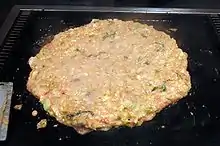 Monjayaki (もんじゃ焼き, often called simply "monja") is a type of Japanese pan-fried batter, popular in the Kantō region, similar to okonomiyaki, but using different liquid ingredients.