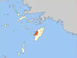 ![]() Monolithos Monolithos (yellow dot) within Attavyros municipal unit (red) ![]() | |