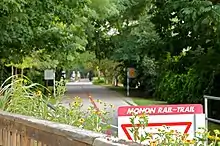 The Monon Trail (known as the Monon Greenway in Carmel) is a rail trail located entirely within the state of Indiana. The Monon Railroad was a popular railroad line connecting the cities of Chicago and Indianapolis, with stops at major settlements along its route. After the decline of railroad travel and the sale of the company in 1987,[2] the portion of the line between Indianapolis and Delphi, Indiana, was abandoned.[3][4]