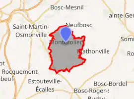 Surrounded by the communes Neufbosc, Mathonville and Saint-Martin-Osmonville, Montérolier is located 26 km northeast of Mont-Saint-Aignan, the largest city nearby.[3]