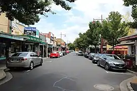 The town is most likely named after the husband of Queen Victoria, Albert, Prince Consort (1819–1861).[4] The local shopping centre (Hamilton Street (pictured to the right) began to be built in about 1913, immediately south of the railway station. A tram service along Whitehorse Road, to the suburb's north-eastern corner, was opened in 1915. Houses between the tram and railway lines are characterised as Edwardian, English Domestic Revival and Arts and Crafts traditions.[4]