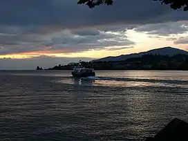Mont Pèlerin (/mɒnt ˈpɛlərɪn/; French: [mɔ̃ pɛlʁɛ̃]; 1,080 metres (3,540 ft)) is a mountain of the Swiss Plateau, overlooking Lake Geneva in the canton of Vaud. It lies north of Chardonne, over Vevey, the border with the canton of Fribourg running at the eastern foot of the mountain.