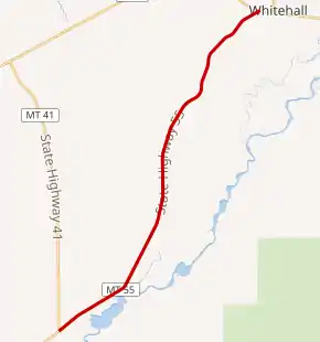 Highway 55 (MT 55) in the U.S. State of Montana is a route running in a northerly direction from an intersection with MT 41 about 4 miles (6.4 km) north of the small town of Silver Star. The highway extends approximately 13 miles (21 km) to an interchange with Interstate 90 (I-90) at the north edge of the town of Whitehall. The route traverses largely agricultural land in the Jefferson River valley.