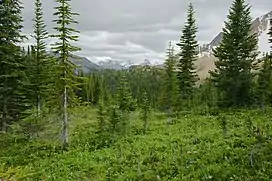 The Montane Cordillera Ecozone, as defined by the Commission for Environmental Cooperation (CEC), is an ecozone in south-central British Columbia and southwestern Alberta, Canada (an ecozone is equivalent to a Level I ecoregion in the United States). A rugged and mountainous ecozone spanning 473,000 square kilometres, it still contains "two of the few significant agricultural areas of the province",[1] the Creston Valley and the Okanagan Valley. Primarily a mountainous region, it consists of rugged ecosystems such as alpine tundra, dry sagebrush and dense conifer forests.[2] The interior plains are encircled by a ring of mountains.[3] The area has a mild climate throughout the year, with typically dry summers and wet winters.[4]