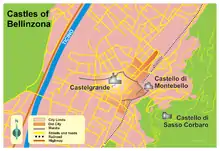 ![]() Location of Castles of Bellinzona in Canton of Ticino ![]() Castles of Bellinzona (Switzerland) | |