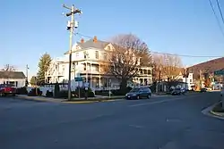 Monterey Hotel, also known as the Highland Inn, is a historic hotel located at Monterey, Highland County, Virginia, United States. It was built in 1904, and is a three-story, rambling frame building, seven bays long and three bays deep with a two-story ell to the north. It is topped by a hipped roof broken by two cross gables. It features a fine two-story Eastlake porch across an otherwise plain facade.[3]