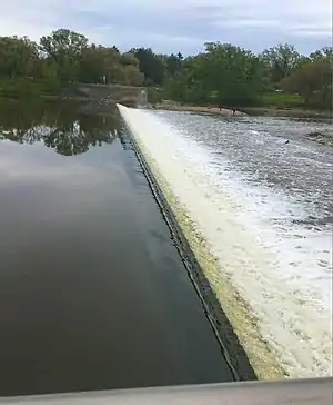 The Montgomery Dam is a gravity dam on the Fox River in Montgomery, Illinois. The dam was built for flood control and navigation in 1969 as a part of the Stratton project[1] dam system[2] which was designed to keep the river navagable from the Wisconsin border to the confluence with the Illinois River. It is owned by Illinois Department Of Natural Resources.