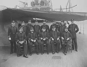 Command duty afloat then alternated with ordnance duty in Washington, D.C., and New York City.[1] Sicard was promoted to the rank of captain on 7 August 1881,[2] and served as chief of the Bureau of Ordnance from 1881 to 1890.[1] He was promoted to commodore on 10 July 1894,[2] to rear admiral on 6 April 1897,[2][5] taking command of the North Atlantic Squadron. He was forced to relinquish his command at the outbreak of the Spanish–American War due to ill health. Upon his partial recovery, he was placed in charge of the Board of Strategy and took an important part in guiding the conduct of the war.[1]