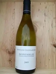 Monthélie wine is produced in the commune of Monthelie in Côte de Beaune of Burgundy. The Appellation d'origine contrôlée (AOC) Monthélie may be used for red and white wine with respectively Pinot noir and Chardonnay as the main grape variety. The production consists of more than 85% red wine, and less than 15% white wine. There are no Grand Cru vineyards within Monthelie.