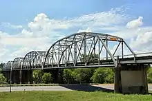 The Montopolis Bridge is a historic Parker through truss bridge in Austin, Texas. It is located in the Montopolis neighborhood where a bicycle and pedestrian walkway crosses the Colorado River in southeastern Travis County. The bridge consists of five 200-foot Parker through truss spans and four 52-foot steel I-beam approach spans resting on reinforced concrete abutments. It was added to the National Register of Historic Places on October 10, 1996.[2]