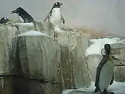 All the exhibits are housed inside the former velodrome (cycling stadium) that was used for the cycling and judo events of the 1976 Summer Olympics, with each of the four environments taking up a portion of the stadium. A variety of animals live in each simulated habitat, ranging from the macaws in the Tropical Forest, to the lynx in the Laurentian Forest, to the penguins in the Antarctic and the different kinds of fish that inhabit the waters of the Saint Lawrence River. As well, two new species have been discovered living in the Biodome: the acarian Copidognathus biodomus in the simulated estuary in 1996,[7][9] and the bacterium Nitratireductor aquibiodomus in the water reprocessing system in 2003.[10]