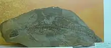 Montsecosuchus is an extinct genus of atoposaurid crocodylomorphs. It is the replacement generic name for Alligatorium depereti, which was described in 1915 from the Montsec Lithographic Limestone quarry of Spain.[1] Fossils found from this locality are from the Early Cretaceous, being Upper Berriasian-Lower Valanginian in age, belonging to the La Pedrera de Rúbies Formation[2] While many publications concerning atoposaurids after 1915 have included mentions of A. depereti, none has offered a redescription or revision of the species, though some recognized that great differences existed between it and other members of the genus.[3][4] In these publications, the skull of A. depereti was shorter in relation to body length than any other species of Alligatorium (being less than half of the presacral length), and this may have been evidence for the genetic distinction of the species, although no replacement name was proposed.[5][6] However, better preparation of the holotype specimen MGB 512, a nearly complete articulated skeleton embedded in a limestone matrix now housed in the Museu de Ciències Naturals de Barcelona,[7] allowed for a revision of the species in 1990 in which the name Montsecosuchus was first used.[8]