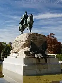 Years after some inconclusive lobbying by Antonio Berenguer and José Ibáñez Marín intending to promote the erection of a monument dedicated to Martínez Campos, the Marquis of Cabriñana resumed the initiative by organizing a popular subscription in 1904, succeeding in bringing on board many military officers.[1] The project was awarded to Mariano Benlliure.[1] The managing committee for the monument was constituted in 1905, with General Primo de Rivera as chairman.[2]