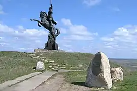 The Monument to the Don Cossacks (Russian: Памятник казакам Тихого Дона) is a monument near khutor of Kruzhilinskiy, Rostov oblast, Russia. The monument is located on the R271 highway that runs from Millerovo to Vyoshenskaya.[1] It was designed by sculptors N. Mozhaev, E. Mozhaeva, N. Shcherbakov. The monument was opened in May 1994. It portrays a Don Cossack. The statue is 6 meters tall, not including its 8-metre barrow. In 2015, the Monument to the Don Cossacks was designated a local Heritage Site.[2]