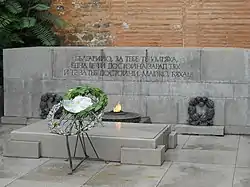 The Monument to the Unknown Soldier (Bulgarian: Паметник на Незнайния воин, Pametnik na Neznayniya voin) is a monument in the centre of Sofia, the capital of Bulgaria, located just next to the 6th-century Church of St Sophia, on 2 Paris Street. The monument commemorates the hundreds of thousands of Bulgarian soldiers who died in wars defending their homeland. Ceremonies involving the President of Bulgaria and foreign state leaders are often performed here.[1][2]