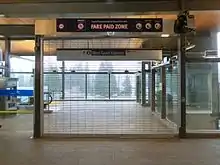 : located near the southeast end of the platform. Passengers using either platform or connecting to West Coast Express must go through an overhead walkway to cross the tracks. - West Coast Express Entrance