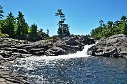 ![]() The main falls of Moon River Falls where it empties into Moon River Bay, Georgian Bay, Lake Huron | |