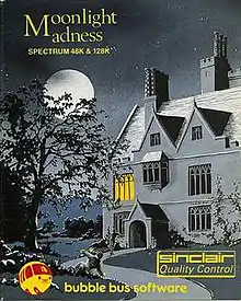Moonlight Madness is a video game for the ZX Spectrum home computer, published in 1986 by Bubble Bus Software. It is an arcade adventure game in which players control a boy scout. The object of the game is to unlock a safe within a mansion to obtain pills for the mansion's owner, a mad scientist, who has collapsed. This requires the player to traverse the mansion's rooms while avoiding hazards such as dangerous house servants and fatal falls.