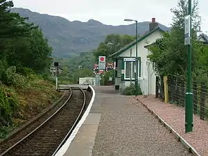 ![]() Morar railway station, looking towards the level crossing and Arisaig | |