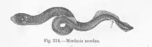Mordacia mordax, known as the short-headed lamprey, Australian lamprey or Murray lamprey, is a species of Mordacia that lives in south-eastern Australia and Tasmania. Mordaciidae is made up of three species: M. praedox, M. mordax, and M. lapicida.[1] M. mordax is a relatively rare, parasitic vertebrate and, along with the hagfishes, is part of the only surviving group of jawless organisms throughout vertebrate evolution.[2] It has a thin eel-like body up to 50 cm (20 in) long, with two low dorsal fins on the back half. The skin is blue-gray or brown. Its eyes are small, and located on the top of its head.